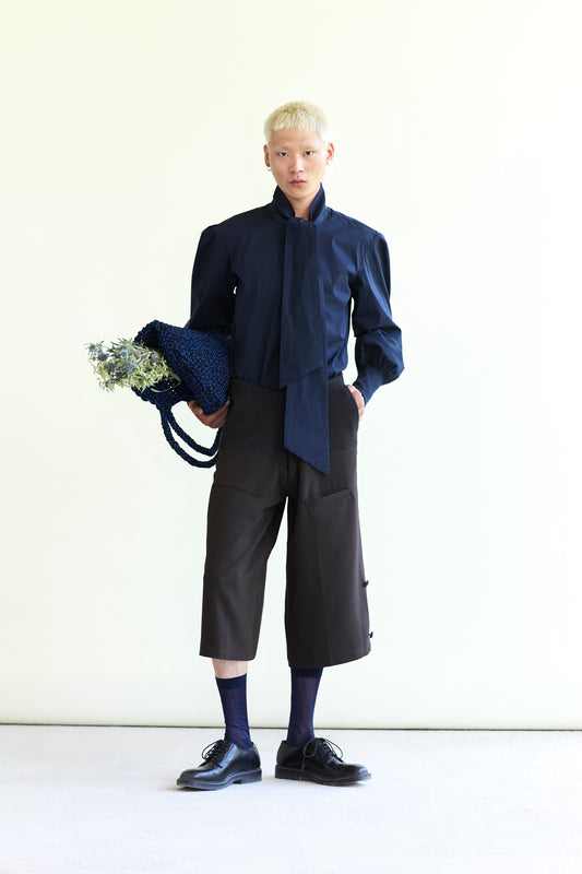 70s cut long sleeve shirt with extended scarf like collar Made from Nylon Delivery begins...