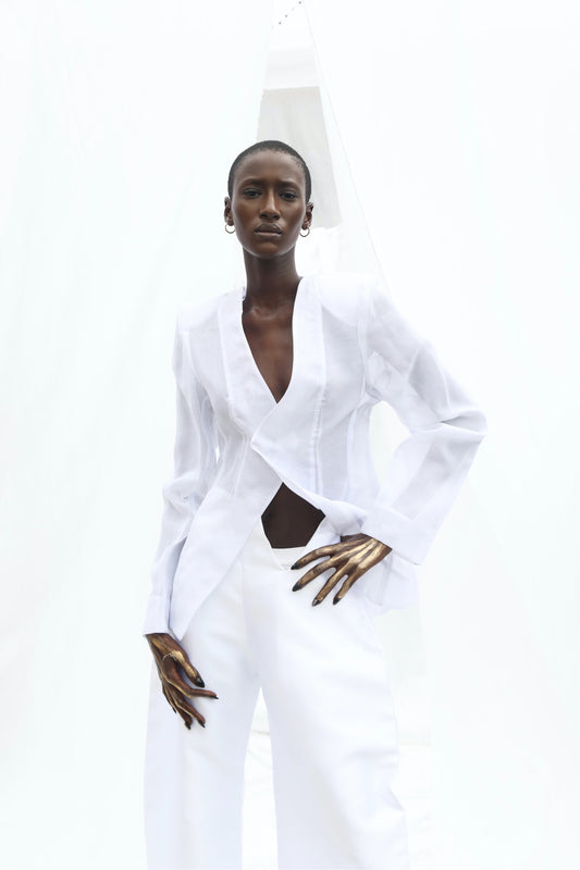 Handstitched sea shell detail sleeveless vest Made from Crepe and Seashells Made in Lagos, Nigeria...