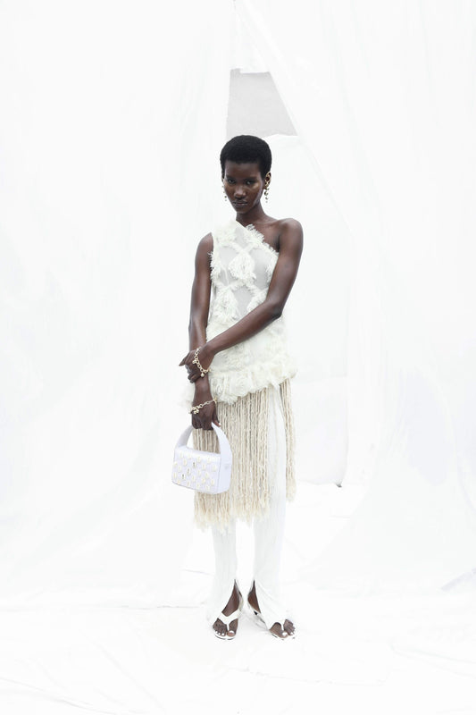 Slim fit trousers with slit ankle down Made from Wave patterned crepe Made in Lagos,...