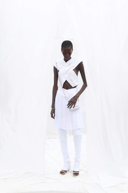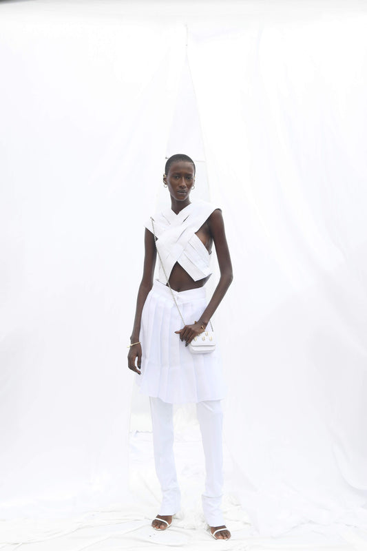Sleeveless top with pleat and pipe detailing on front Made from Crepe Made in Lagos,...