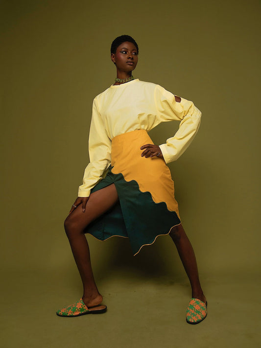 Round neck, long sleeves, asymmetric cutout and elastic detailing Cotton Artisanally crafted by local communities...