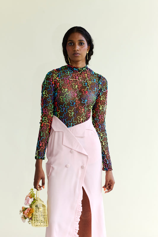 Emboridered mesh and crepe midi dress Made from Mesh and Crepe Delivery begins August 2025...