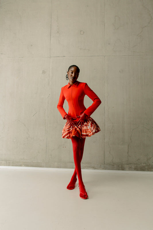 Zip up blazer puff hybrid dress Made from Crepe and Poly heavy satin Delivery begins...