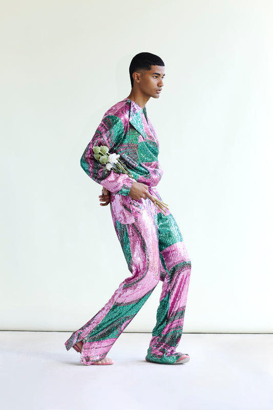 Custom Print Sequin Pants with Front Slit Made from Wool Delivery begins August 2025 Made...