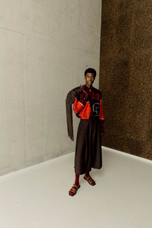 Woven slim fit trousers Made from Aso-one (Local Nigerian fabric technique) Delivery begins March 2025...