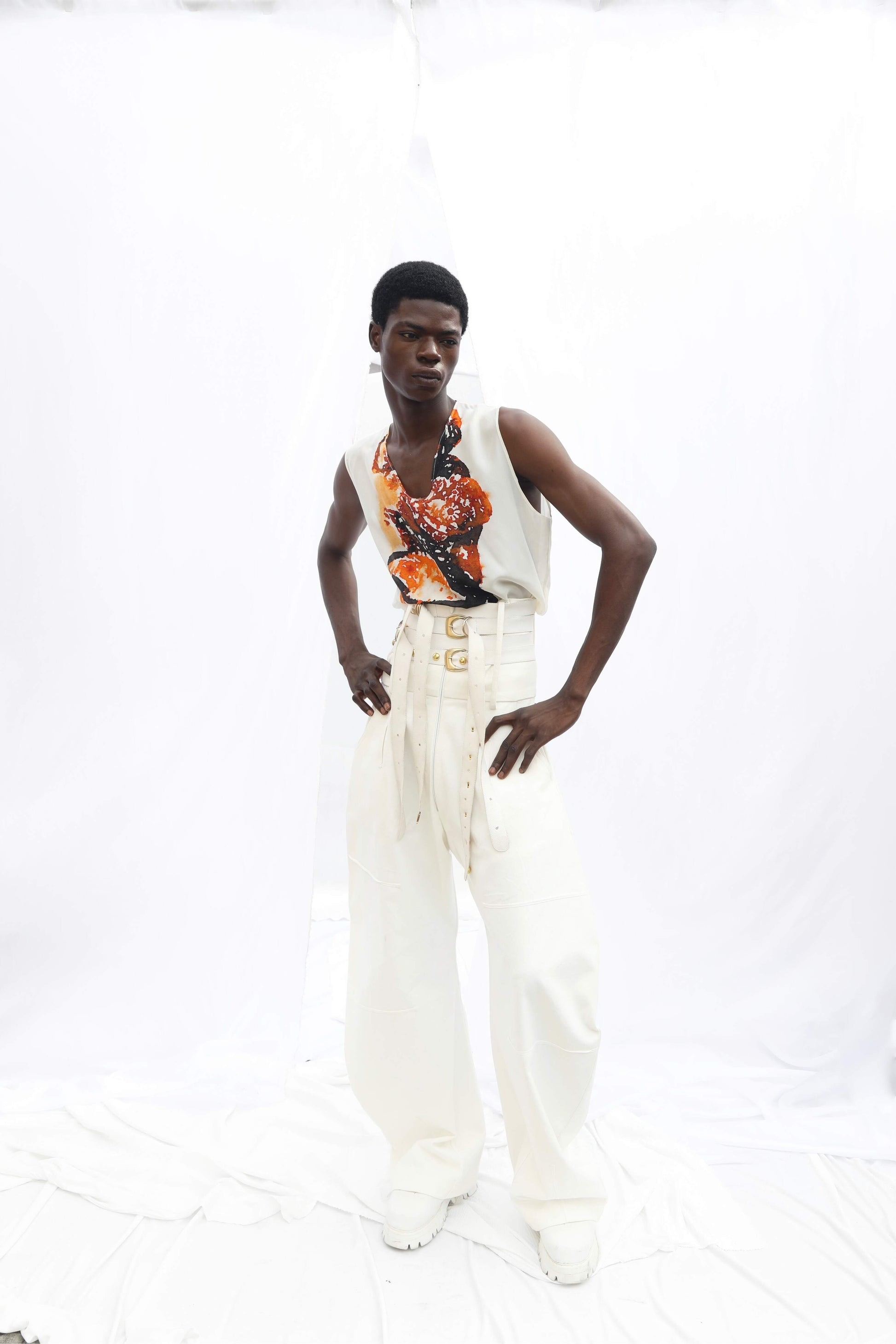 - High Torso Cocoon shaped denim trousers (Belt comes separately)