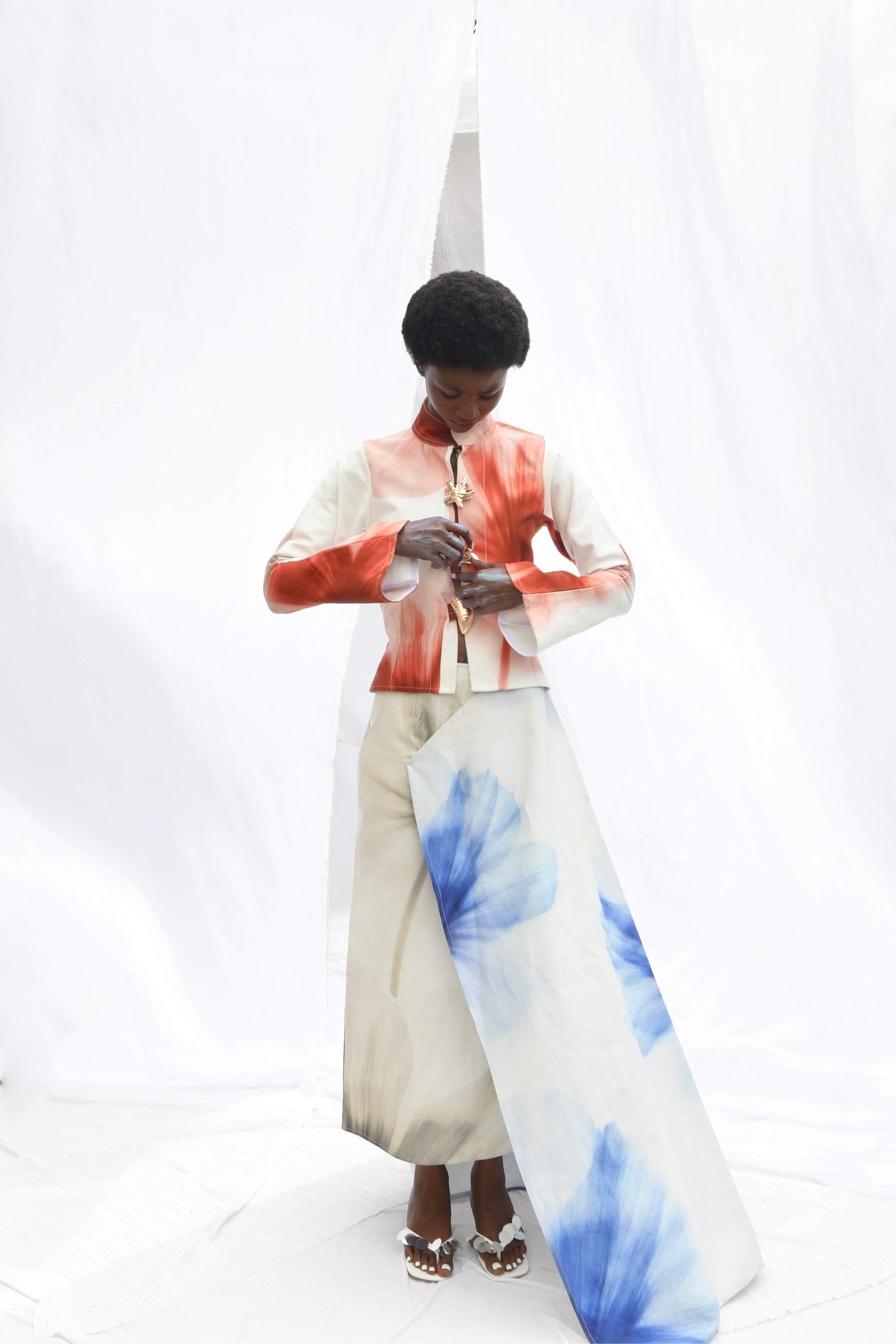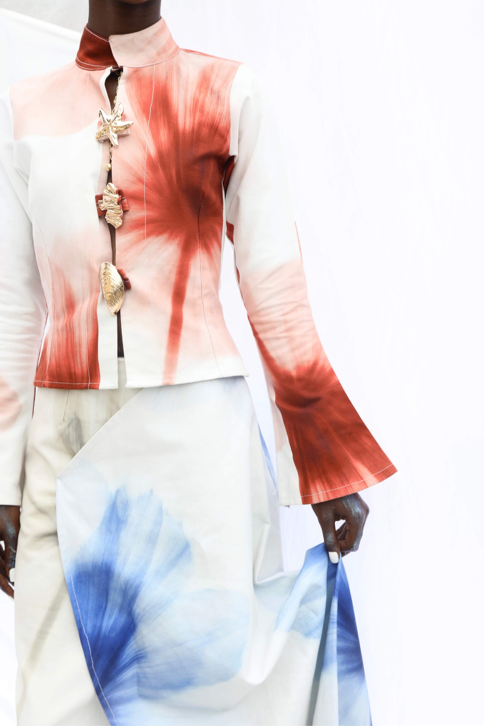 - Custom bloom print shirt with gold applique
