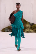 - Mono strap assymetric dress with wick fringe
