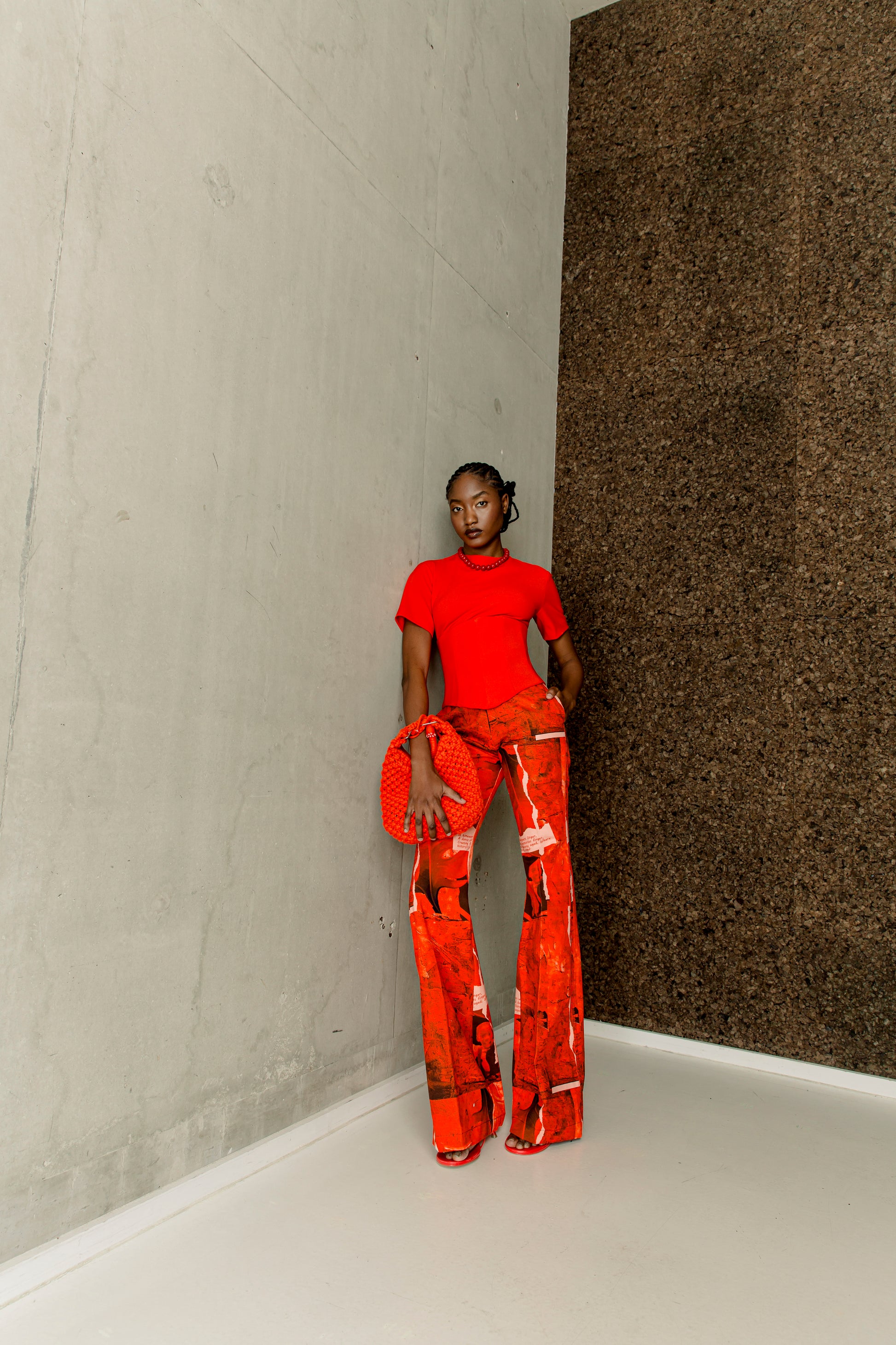 - Slim to flare print pants