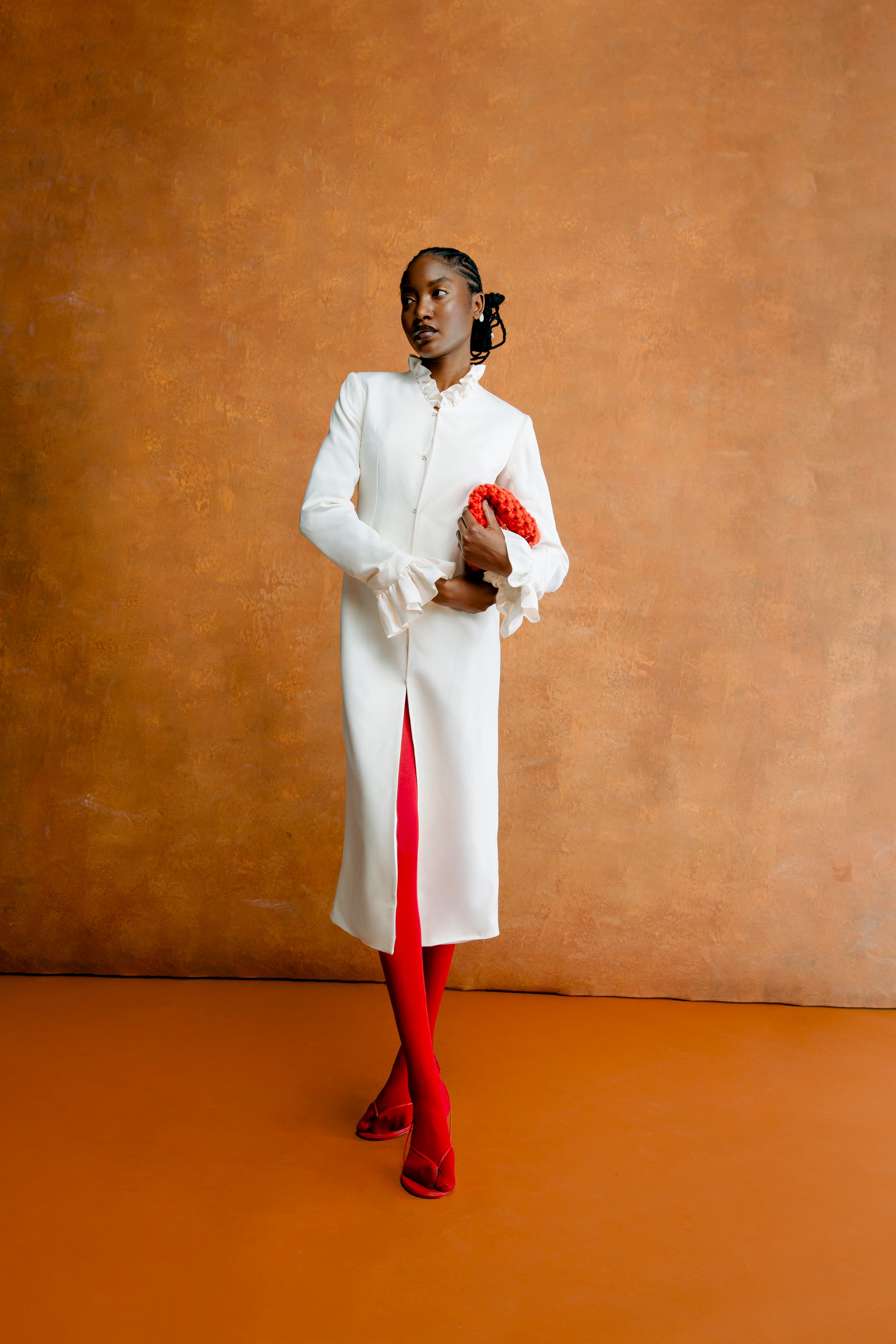 - Frill detailed midi coat