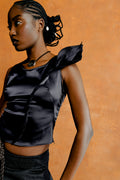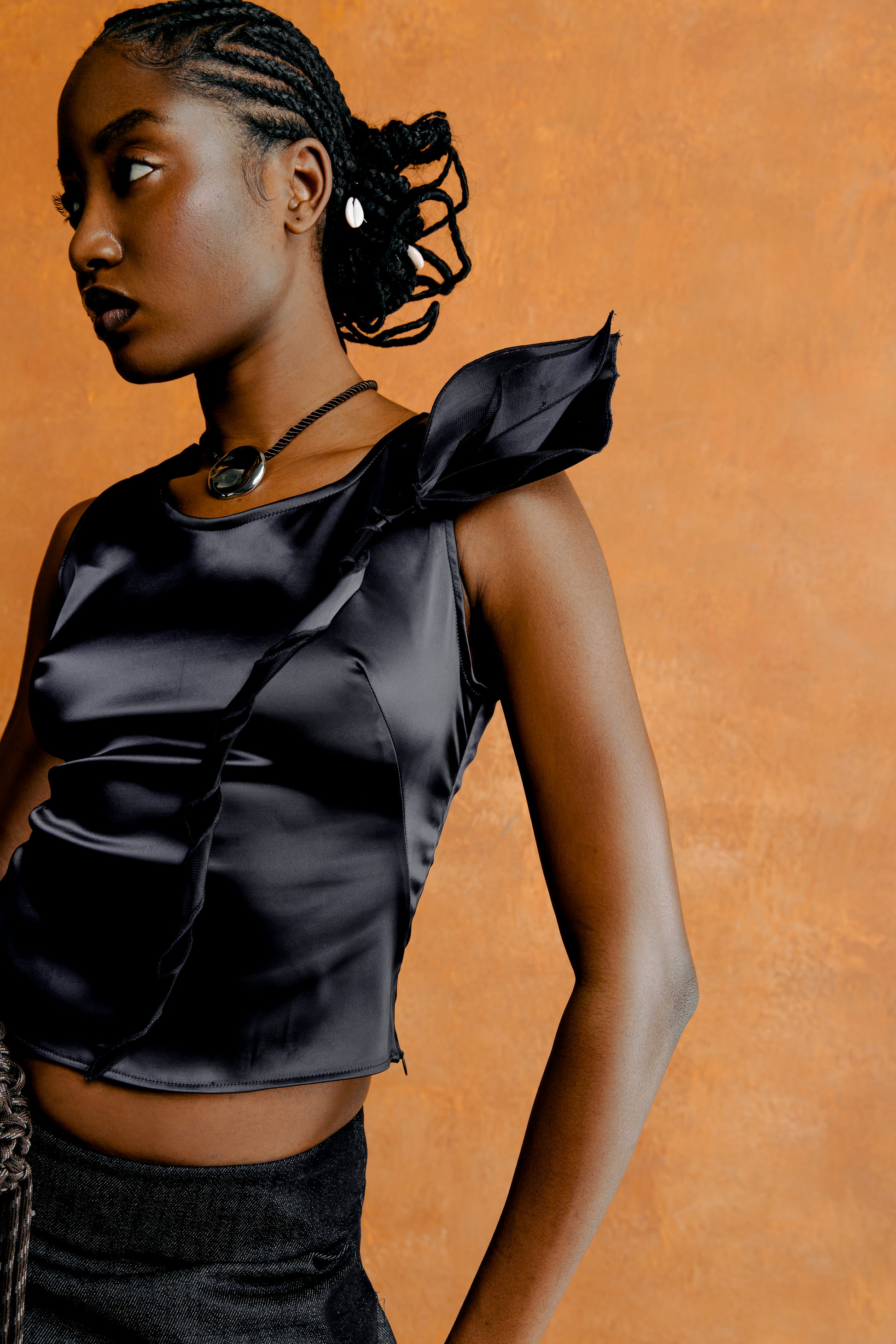 - Midi skirt with extended side petal detail and slit in front