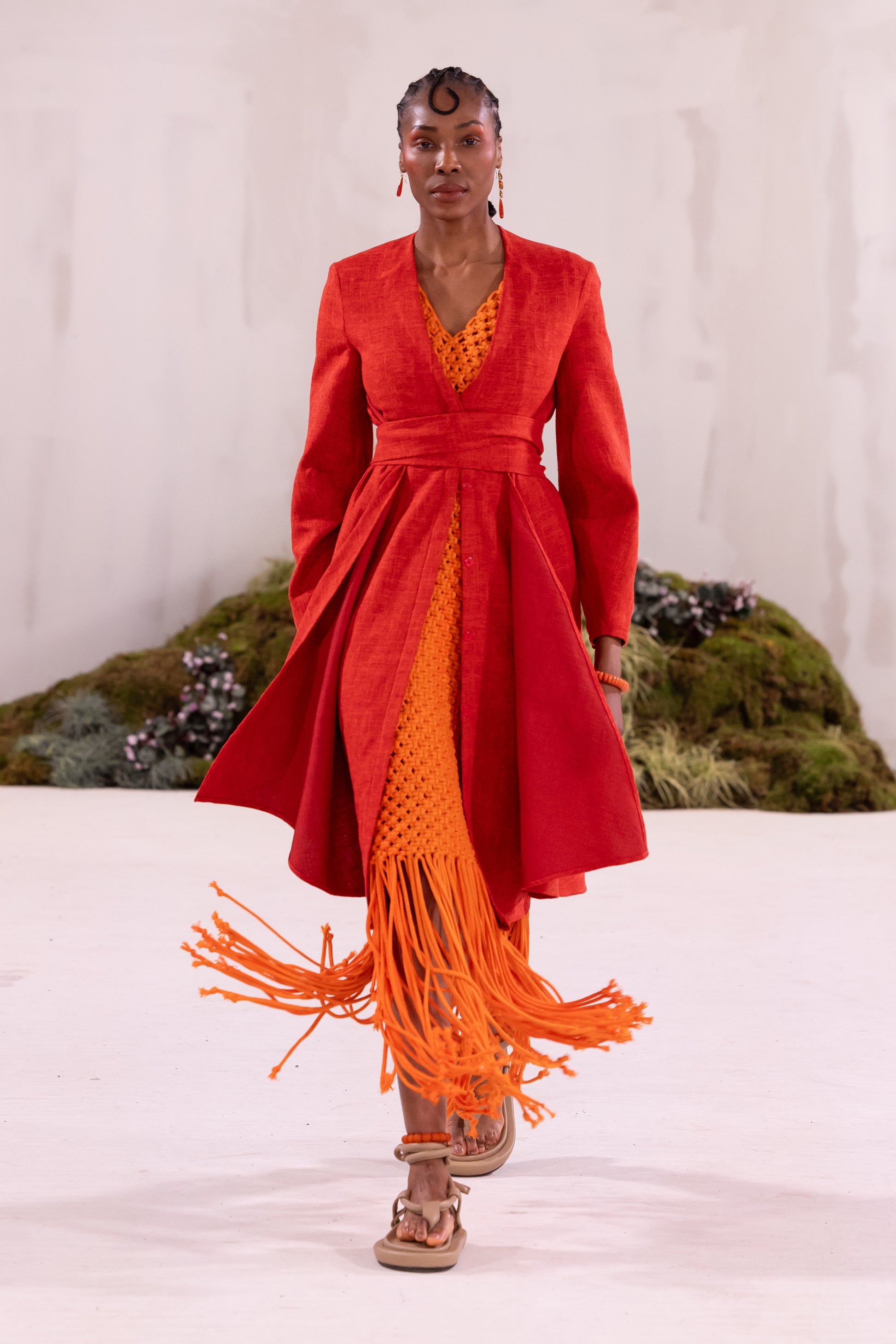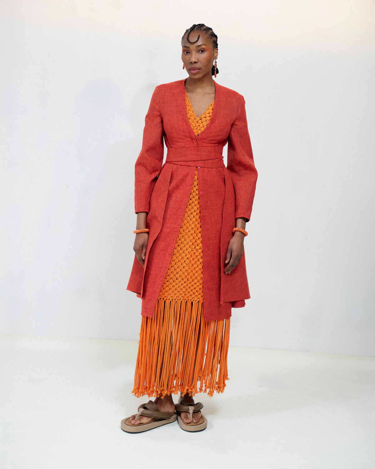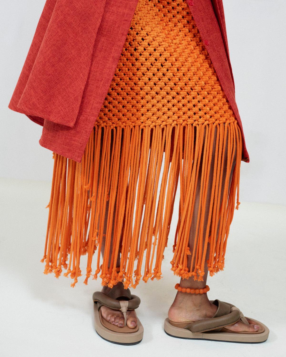 - Handwoven macrame sleeveless dress with fringe detail